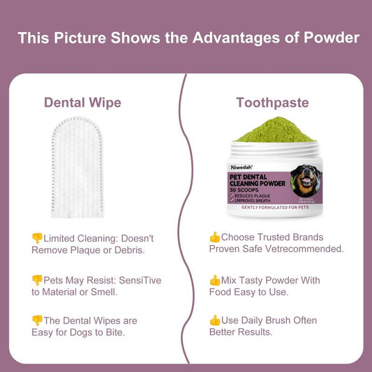 Niwedah Pet Dental Cleaning Powder - 30 Scoops for Dogs - Reduces Plaque & Improves Breath - Natural Herbal Blend & Postbiotics - Safe & Easy to Use